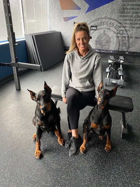 She stays active with Half Marathons, Hyrox competitions, and gymnastics workouts. In her free time she is an avid dog lover, especially Dobermans. She enjoys volunteering with the local Doberman Rescue and works hard so she can continue to give more, which is her passion in life – helping those in need.
